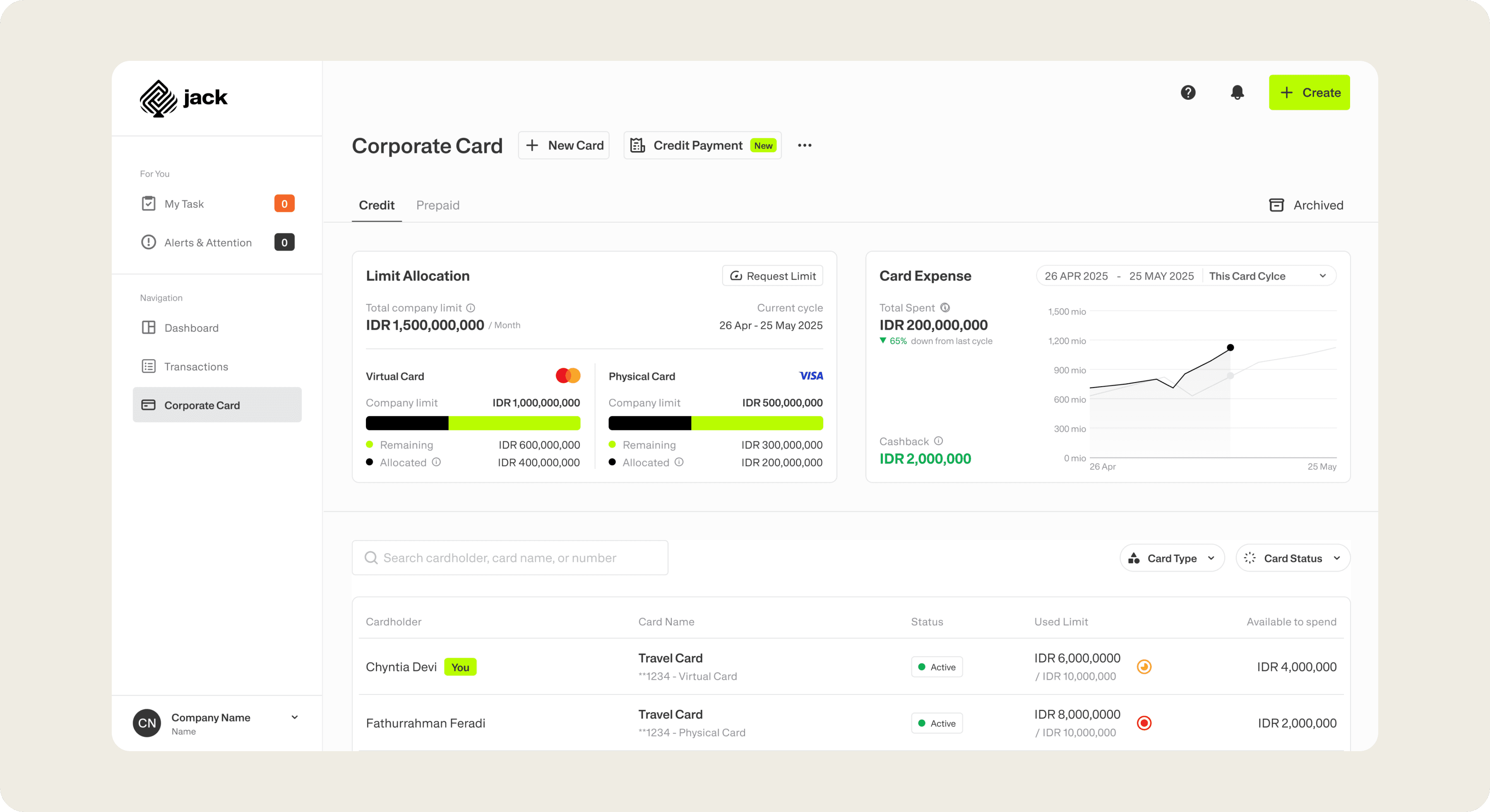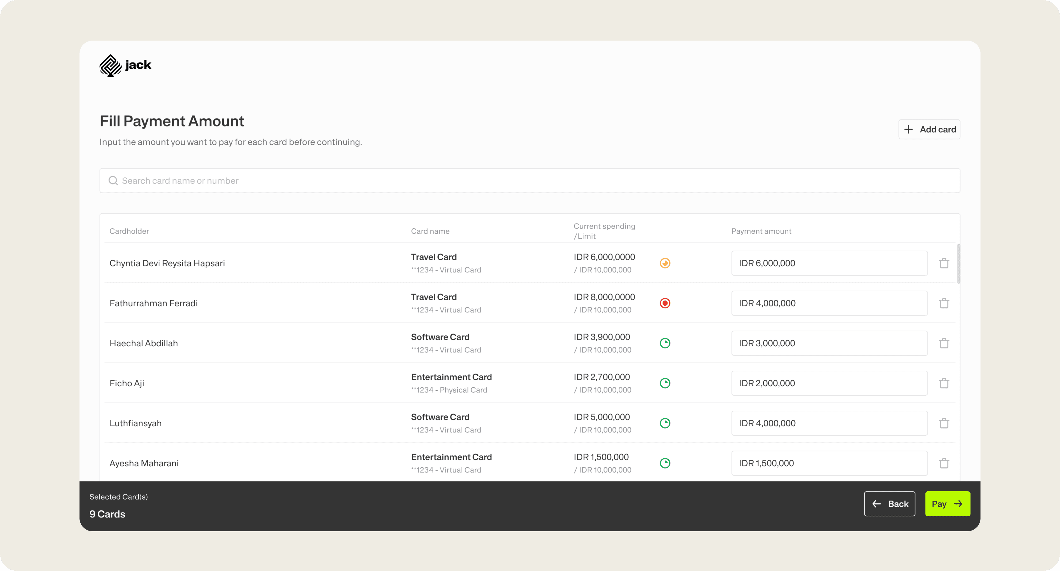 Jack is a business financial management platform that integrates corporate cards, payroll, and bill payments into a single portal.