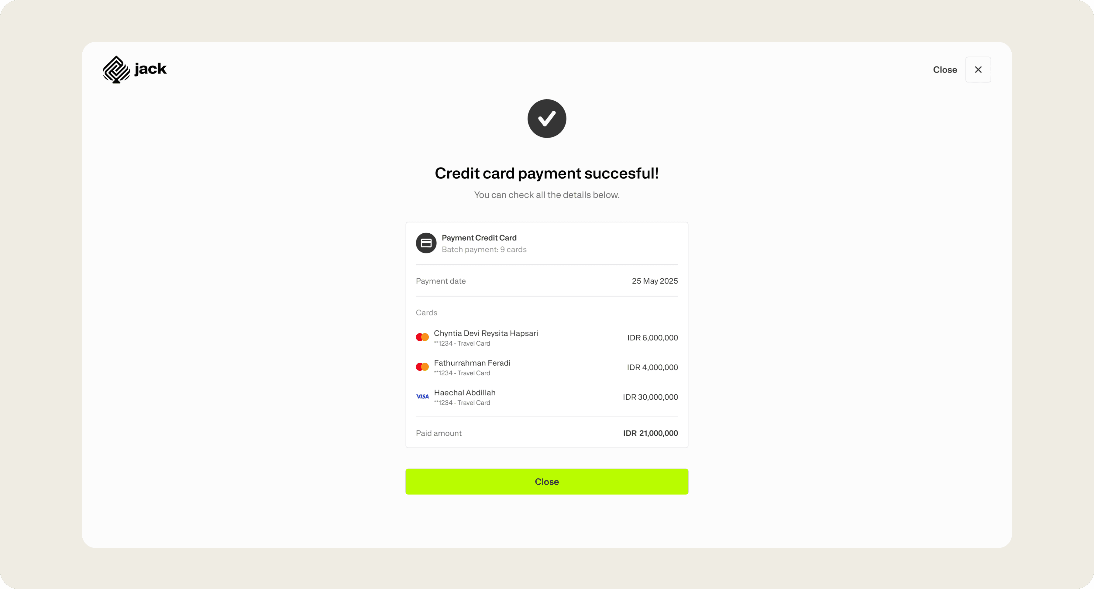 Designed an early billing payment flow for corporate cards on Jack’s web portal.