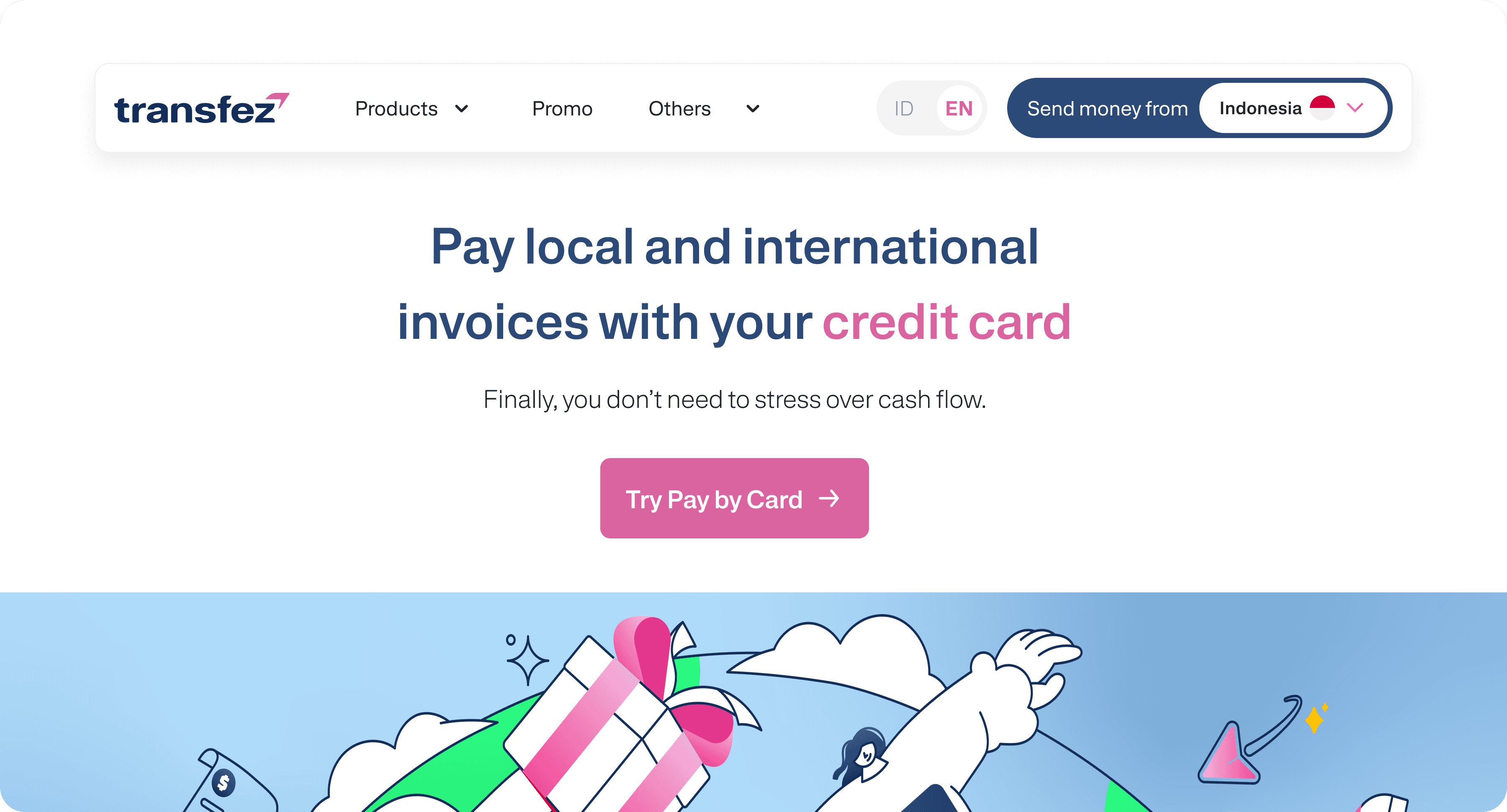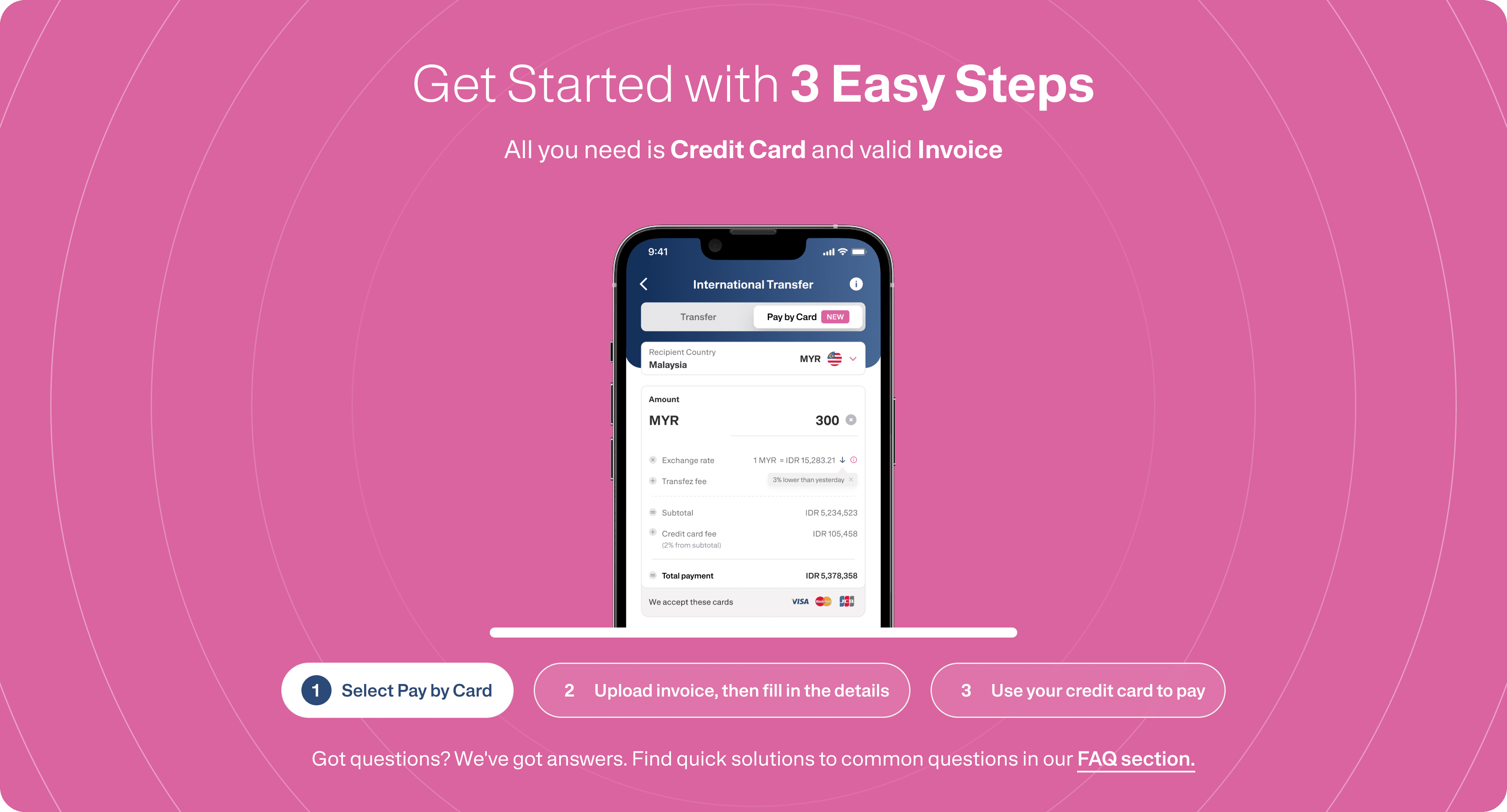 Transfez offers Pay by Card, a feature that allows users to pay invoices or transfers using a credit card—unlocking flexibility, speed, and card-related benefits.