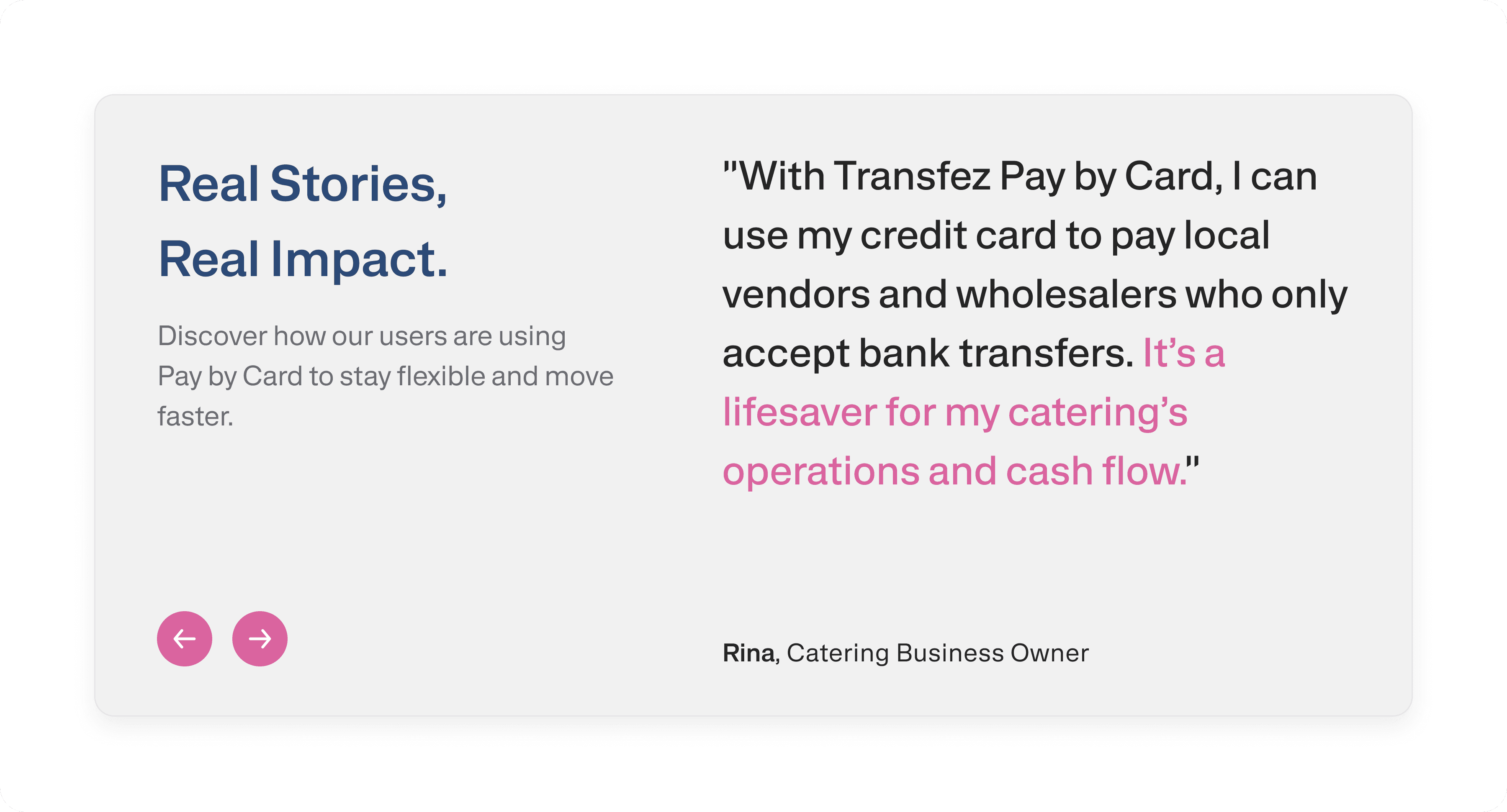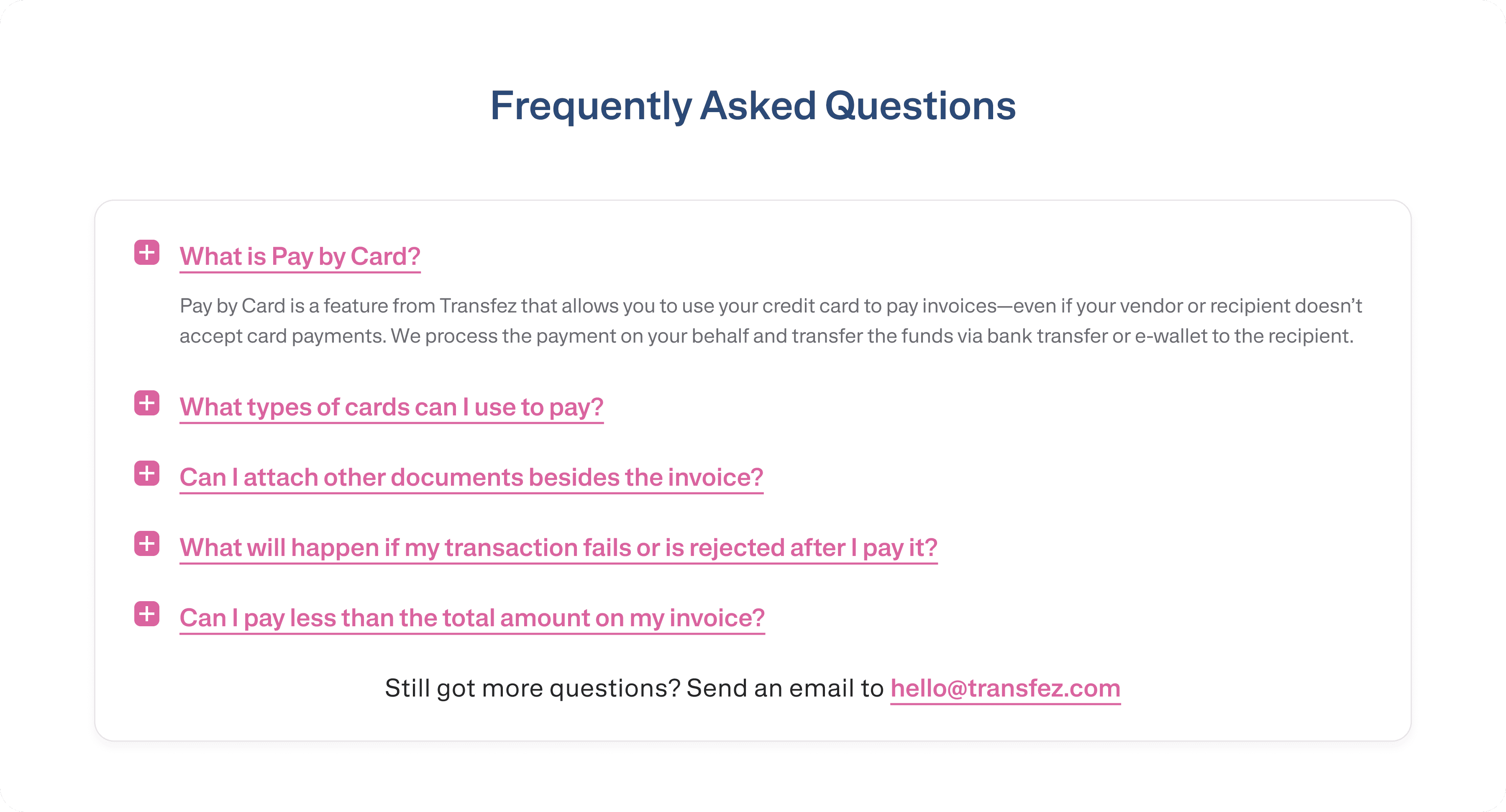Improved visibility and discoverability of Pay by Card on Transfez’s main website.