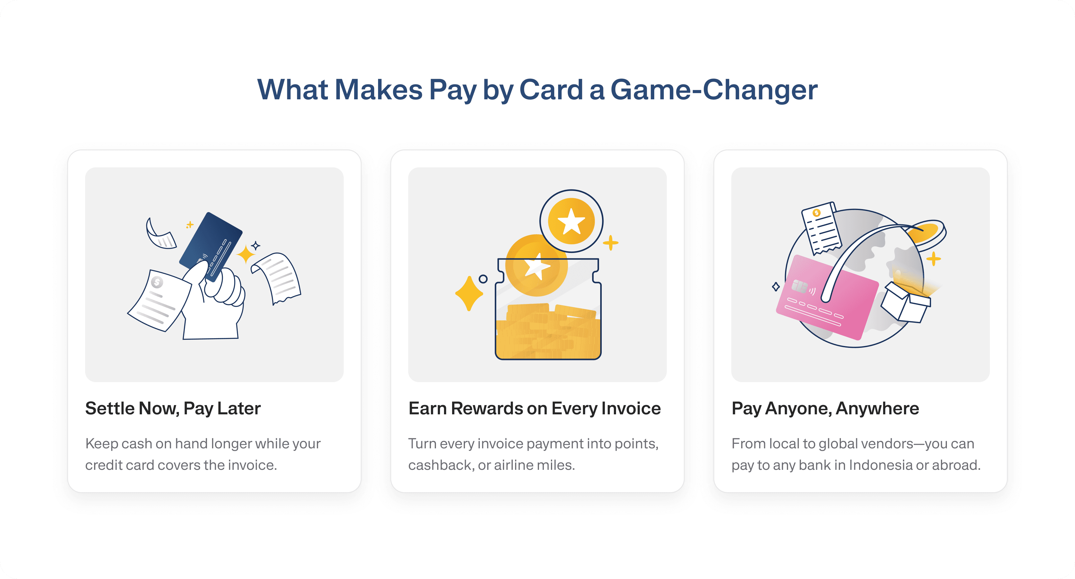 Clear value proposition upfront to immediately communicate the benefit of Pay by Card.